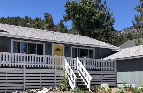 Updated 3 bedroom and 2 bathroom home with 2 decks, fireplace; sleeps six and dining table for 8. Mtn & pine view neighborhood. A place for relaxation! WiFi, 2 Smart TVs with movie and multiple show options. Brick, hearth with wood burning stove fireplace. Big, beautiful kitchen with stainless steel appliances and granite countertops. Large refrigerator. They Master is en-suite. The house sleeping arrangement is:,2 King beds and 1 daybed with 2 twins. Backyard sectional couch with fire pit. 2 outdoor dining tables. Outdoor BBQ. Play climbing/slide structure for kids and mini trampoline. Cherry & apple trees within a fully fenced backyard. Front deck rockers. Driveway with parking. Front door ring security camera. In the summer the back deck receives the morning shade in the evenings the front deck provides more shade and sunset vistas.