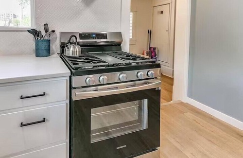 The main bedroom features a queen bed, while the second offers a twin-over-full bunk, perfect for families or friends. Enjoy peaceful mornings on the welcoming front porch or private back patio—ideal for sipping coffee or tea. Privacy, fenced in backyard. Pets Welcome with pet fee. Wi-fi.