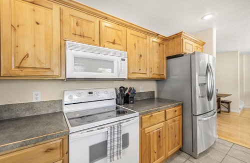 The kitchen is equipped with a standard set of pans, dishes and utensils, along with plenty of dining space for the whole group as well. The main living area has a comfy couch, and a smart TV. Down the hall is a washer and dryer set to make you feel right at home. There's also a back deck with a grill where you can relax and enjoy the views. In addition one upstairs bedroom has a walk out balcony with seating outside to enjoy the beautiful views!