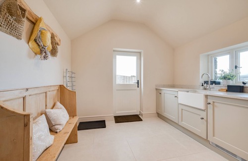 Kitchen and utilities: Stylish and spacious kitchen with double oven, 5-ring induction hob, extractor fan, fridge/freezer, integrated microwave, dishwasher, coffee maker, George foreman grill, dining table with 6 chairs and bi-folding windows with incredible views of your surroundings. Utility room with washing machine, tumble dryer, wash basin, pew (bench), towel rail, coat hooks and storage.