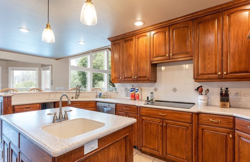 Kitchen- The kitchen is stocked with pots, pans, cookware, cups, silverware, and more! Our housekeeping team leaves out salt, pepper, and a can of cooking spray. Friends, family, and other guests sometimes leave spices, aluminum foil or ziploc bags at the home. You are most welcome to use any of these items, but if something is particularly crucial to the success of your meals, we do recommend bringing it along with you.