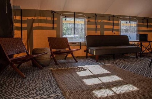 Camping areas are available on the property's grounds, allowing you to pitch a tent and reconnect with nature. Glamping pitches are also available for a more luxurious camping experience, featuring larger tents with queen beds, electricity, Wi-Fi, fire pits, and private balconies.