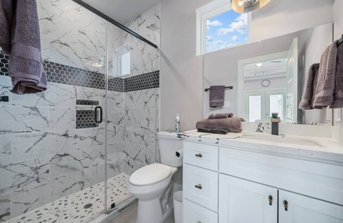 Enjoy a stylish and cozy stay at this centrally-located one-bedroom studio in the heart of Houston! This modern studio offers: a well-equipped kitchenette with a refrigerator, two-burner cooktop, dishwasher, microwave, sink, and under-cabinet lighting. Sleek quartz countertops and backsplashes, with kitchenware, make it perfect for preparing meals. Queen bed with a new, plush mattress and pillows. Refresh in the luxurious bathroom. Ideal for solo travelers or couples looking to explore Houston.