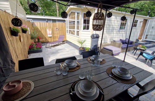 Enjoy a wonderful holiday in our comfortable holiday home, ideally located on the edge of the forest in the Veluwe. The chalet offers a cozy living room with an open kitchen and plenty of natural light. Additionally, the living room features a modern TV where you can watch not only your favourite programs but also stream YouTube videos.