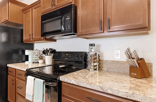 Starting with an easy to use kitchen that includes a full size fridge with water dispenser and ice maker, stove & oven, dishwasher, microwave, and Keurig (coffee included). We offer plenty of utensils and cookware so you can cook your favorite meals during your stay. Dinner is served with a simple, but elegant dinner table (6) and a bar with (4) barstools.