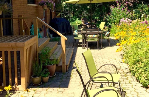 Bracken House is located on the outskirts of Old Town; close to wineries, theatres, parks, biking trails. Ideal for groups of friends, families or small staff retreats to a maximum of 8 overnight guests. This newly renovated, 1085 sq.ft. bungalow is pleasantly situated on 2/3 acre. Bedrooms: the master bedroom has queen bed w/ensuite bath, north bedroom has a queen bed, and south bedroom a double bed. The main bathroom is a small, but includes a shower. The kitchen is fully equipped, with a dining table to gather for your meal. Take that gathering outside to the patio dining table & BBQ, or perhaps around the fire pit in the rear garden. WIFI throughout the house. There is a wood-burning fireplace and a TV/DVD player in living room. The large screen TV and electric fireplace is in the basement family room, which also has 2 queen-sized hide-a-bed couches for additional guests. There is a third bathroom adjacent to the family room. Laundry facilities are available to week-long reservations, or by special request. Further accommodation options include 2 full bed & breakfast suites at our own property, Bushy House, which is next door to Bracken House. The listed rates include all taxes: 13% HST and 3% MAT. That aside...