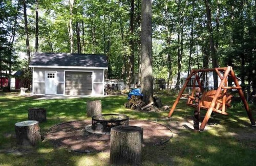 Beautiful ranch with Houghton Lake located at the end of the street. This marvelous 2-bedroom house offers a cozy retreat for guests. Access to launch a small boat. DNR launch close by. Property is on Devonshire which is the access road for ORV trails. Trails are 1/2 mile down the road. Large fenced yard with fire pit, BBQ and swing set. Great for kids. Boating, trail riding, hunting or just relaxing, this it the place. The bedrooms feature 1 full bed, 1 bunk bed, and 1 twin bed, ensuring a comfortable night's sleep. Additionally, the two living rooms provide extra space with sofa beds for lounging or accommodating extra guests. With amenities like AC, WiFi, and a washing machine, guests can relax and unwind. The bathroom comes equipped with a towels and hairdryer for added convenience. Well water. Please note we have security cameras to monitor outdoor house access. Our cleaning staff is top notch. You're sure to make fantastic memories with a stay at our place.