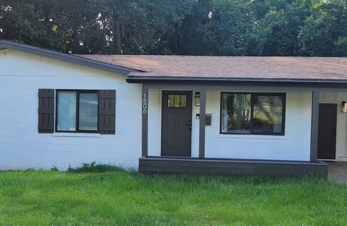 Discover the best of Tallahassee in this beautifully renovated 4-bedroom, 2-bathroom home in Jackson Bluff! The elegant master suite features a double sink bathroom and work desk. Just a 2-minute drive or 10-minute walk to Doak Campbell Stadium, and a 3-minute drive or 15-minute walk to lively College Town. Enjoy a fully equipped kitchen with brand-new appliances, high-speed WiFi, TV, and a washer/dryer. Perfect for game days or extended stays. Book now for a delightful and comfortable retreat!